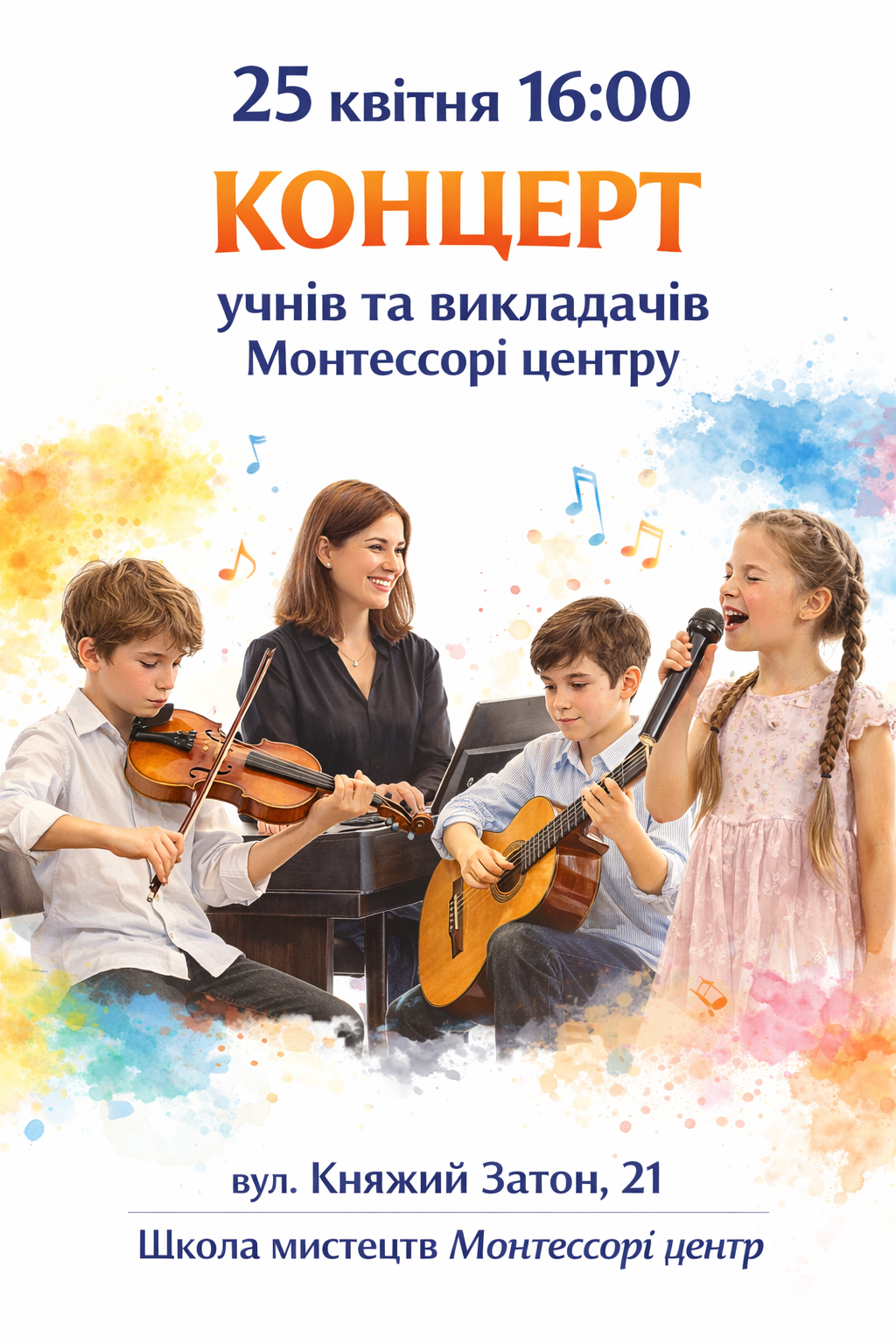 25 квітня о 16:00 у школі мистецтв Монтессорі центр відбудеться концерт учнів.