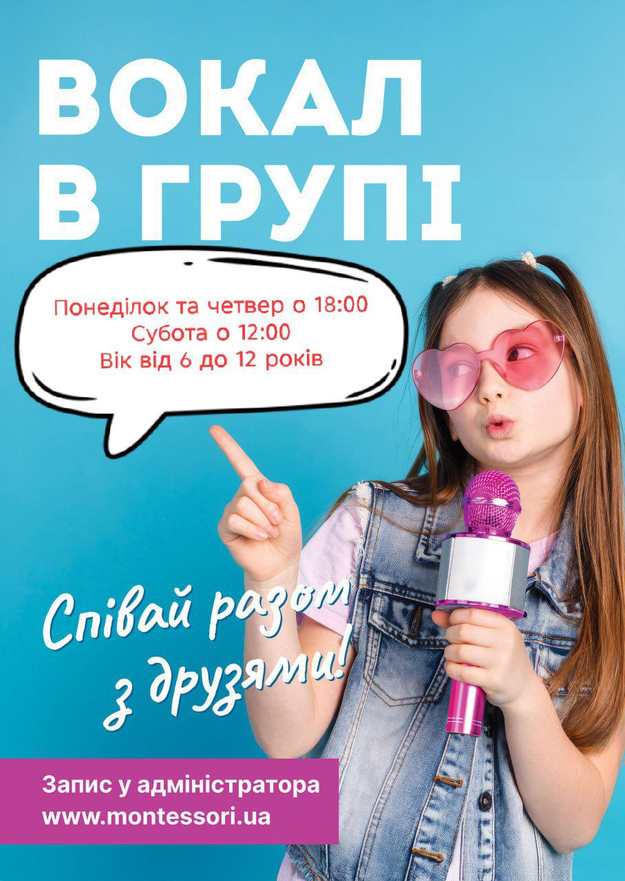 Приглашаем детей на групповые занятия по вокалу в Монтессори центре! На уроках дети развивают дыхание, дикцию и слух, учатся петь в ансамбле, работают с микрофоном и готовят яркие концертные номера.