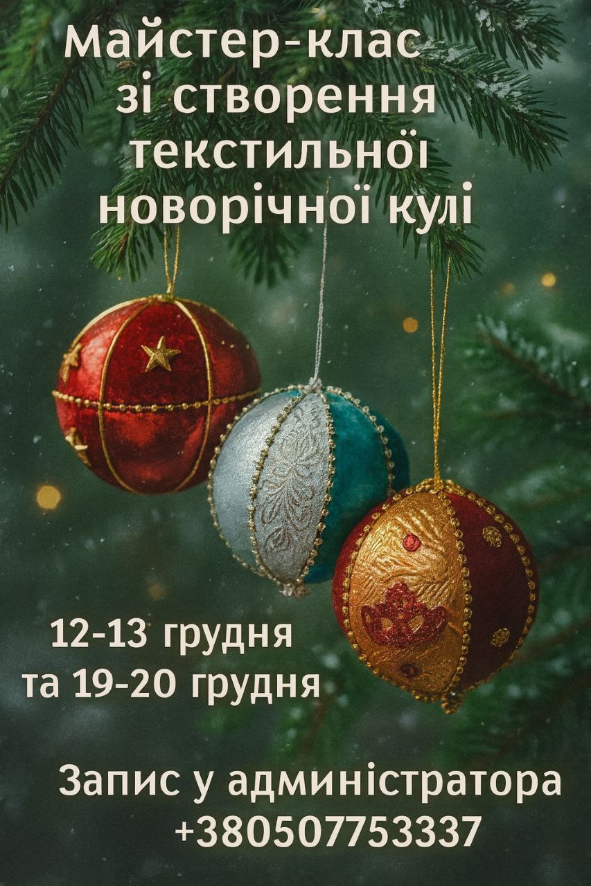 05гру09:0109:01Майстер-клас зі створення текстильної новорічної кулі